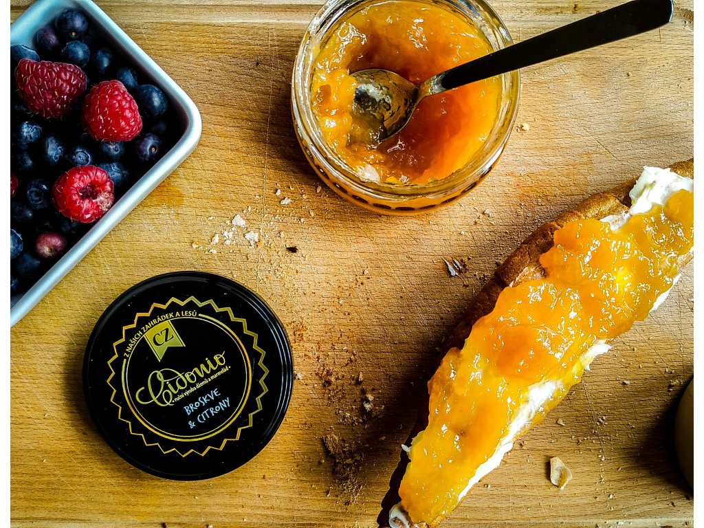 Složení: broskve 62 %, citrony 12 %, cukr.