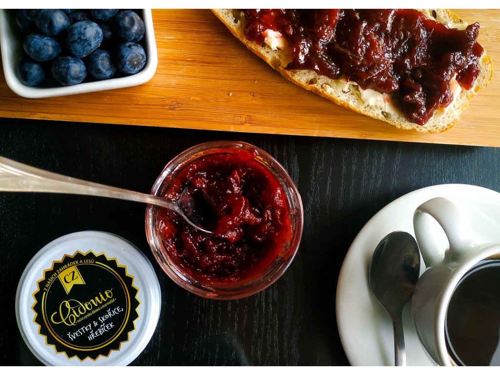 Na výrobu 100 g výrobku bylo použito 77 g ovoce a obsahuje max. 40 g přírodních sladidel (přesné množství závisí na zralosti a odrůdě použitého ovoce, konkrétní údaje jsou na etiketě a případně sdělím na požádání před objednávkou).